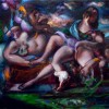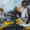 This series of paintings is concerned with the body as a constantly changing and evolving entity, both physically and socially. My curiosity lies in the intersection of personal experiences of intimacy and desire with the tumultuous realities of our contemporary world – shaped by pandemic, ecological concerns, and social inequalities. Through the application of diverse paint viscosities and layering techniques, I explore the transformation and suppression of physical forms within chaotic environments, suggesting a continuous negotiation between inner and outer pressures. As fluid and ephemeral postures unfold amidst this turbulence, echoes of historical art forms intermittently surface and dissolve, emphasising the mutability of bodily forms.
