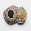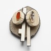 A collector of all manner of things, Christel searches for carefully considered relationships between sometimes disparate elements in her jewellery, with the intrinsic qualities of the materials as her starting point. There are two facets to her practice: The precise carving of ceramic honeycomb components, a refractory material intended for the jeweller's soldering bench, and the use of found materials. Placed together, the mundane, the discarded, the overlooked and occasionally the precious, create new poetic possibilites, inviting the viewer and wearer to see jewellery in a different way.