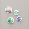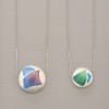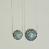 Mio Kuhnen is informed by her background as an Environmental Scientist, specialising in marine and sedimentary geology. In her works there are two final transformations. An image built on collected data is then re-imagined in embossed metal. And then there is a transformation of scale: the vast miles of inaccessible sea floor is condensed into small circular metal forms that can be worn and held.