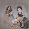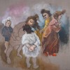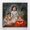 I am inspired by classical painting and portraiture, feelings of ambiguity, light and shadow. I am particularly interested in enigmatic compositions, raising questions between reality and illusion and creating a sense of uncertainty between the viewer and the figures depicted. I am interested in this dialogue of ‘who is looking at who’ between the audience and the painted subjects, which for me is tied up in my own reflection of my past; of me looking at these characters I’ve painted, and their gaze looking back at me. I feel an immediacy in their observation and strong sense of attachment to them, yet also I am an outsider to the canvas. It’s as if my painted characters challenge and speak to me, the creator and in turn the viewer. It is a kaleidoscope of memory, portraits of the past or the framing of a life, but at the same time questions of who is looking at who in the paintings confuse interpretation and subjectivity.