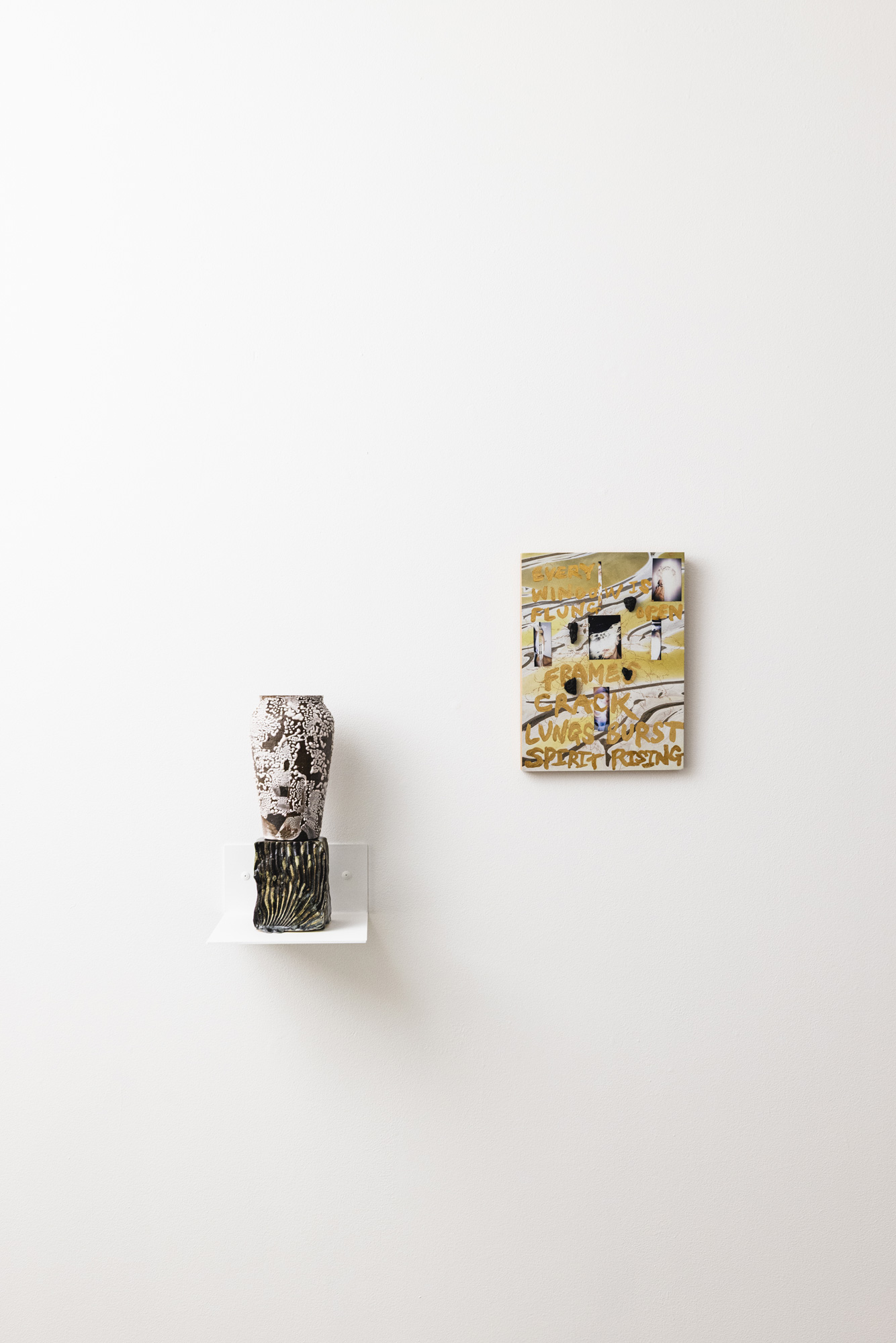 Both artists work with, and interpret these hallucinations, or messages/messengers of God in unique ways. Combining traditional crafts materials and processes such as ceramics and metal with digital processes such as image manipulation, collage and A.I. generated instructions the artists provide touchpoints for understanding how to interface with, and understand digital deities through materials and psychological space.