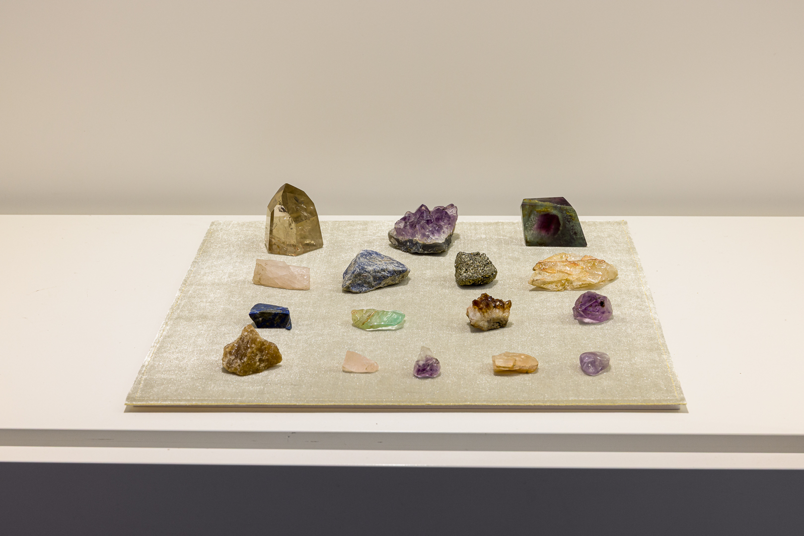 There’s animism to my method. The materials and colours emit their own life force, they speak to me. Sometimes I receive a transmission, a frequency, and a colour or material will light up my spirit, so I follow that sensation. The natural ephemera, gems, rocks and shells, appear as elemental companions, assistants to the material magic.
