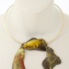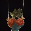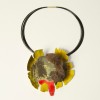 Sean Axelrod’s work veers between wearable ornament and sculpture. Axelrod alludes to medals and uniforms through colour, materials and the arrangement of shapes, but on second glance the dominant imagery is seen to consist of a hidden narrative. Visually, these are interesting rather than pretty assemblages, but their ‘meaning’ and their symbolism suggest ambiguities that are open to interpretation.