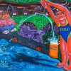 Denis Clarke works across painting and drawing, exploring the relationship between himself, the bodily and the tactile. Interested in creating a process of informed experiment, his paintings extend conversations of subject, texture and paint fluidity that suspend perception and reality. His work layer playful exchanges between drawing and painting processes, finding new solutions with mark-making to explore the subject. Contextualised within the European neo-expressionist movement, Clarke’s colourful gestural works deconstruct improvisation, inviting new and playful languages of representation.