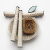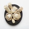 A collector of all manner of things, Christel searches for carefully considered relationships between sometimes disparate elements in her jewellery, with the intrinsic qualities of the materials as her starting point. There are two facets to her practice: The precise carving of ceramic honeycomb components, a refractory material intended for the jeweller's soldering bench, and the use of found materials. Placed together, the mundane, the discarded, the overlooked and occasionally the precious, create new poetic possibilites, inviting the viewer and wearer to see jewellery in a different way.
