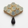 Brooch, ceramic honeycomb, powder coated sterling silver, 18ct gold, vintage lucite beads.