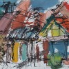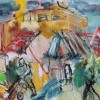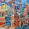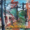 Previously Unseen is grounded in drawing and painting directly from a subject: factories and urban streets, to explore structure and space. The challenge is one of interpreting the human built environment that we live amongst and experience our lives within. It strikes me that our cities are our emotional landscape and my work is a meditation on what the visual outcomes of that are. In beginning a painting, I am at first apprehensive; I proceed with a mix of drawing and painting and an element of indecision. I need something to observe so as to scan and take hold of shapes from buildings, spaces near and far, inspiration for colour and figures which inform the space.