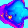 “In my most recent works, I am using numerous liquids & a reacting agent to create the image. I capture moments in a rapidly moving reaction using photography and video. I have been developing this technique over a number of years. I am very excited by this work and by its uniqueness.”