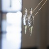 Anna May Kirk engages with this concern, too, in Exhalation (2021). Standing amidst the backdrop of the 2020 bushfires, which saw the nation stir into climate emergency, the work references climate concerns throughout history. By appropriating "pomader balls” — vials commonly used during the Middle Ages that were filled with perfumes like civet and musk, seen to deter polluted air that was perceived to be the work of witches; and Victorian era “tear bottles” — Exhalation points a finger at similar denialist sentiment that circulated during 2020: that the bushfires were a result of arsonists and not directly related to climate change. Interestingly in Exhalation, the biomorphic glass vial — which Kirk fills with a combination of native essential oils, spices and other scents — is thread, hung and mounted to a glass mirror in the angled shape of Medieval paintings. Decisions such as these are undoubtedly deliberate and as the viewer looks back at their own reflection, Kirk asks us to consider the mirroring of past and future and the viability of the world, not only for ourselves, but for future generations.
