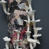 Chyrstal Rimmer’s work expands upon this question, stipulating plastic’s impact upon the natural environ- ment has redefined the state of the contemporary environmental landscape. The human vs nature dichotomy is something that Rimmer tries hard to destabilise. Through a rigorous studio-practice of breaking down waste plastic to be remodelled into the form of fallen trees, twigs, and fungi taken from the bush; Rimmer’s work not only conflates the human environment with the natural one — quite literally fusing the two together — but also straddles other opposing ideologies inherent in art; such as painting and sculpture. The painterly- like surface of melted plastics — that are restructured through the use of moulds and later, into an object upon cooling — becomes synonymous with Rimmer’s main argument: “to dismantle problematic ideologies including nature’s oversimplification as an entity in opposition to man.”