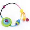 To create my jewellery, I use objects of every day use, those which surround us everywhere, and are so close to us that we no longer see them. I find these and set them into a new context, so they become visible again. Objects consisting of polymers exist in beautiful colors and forms. If one observes them on a pile, tops of plastic bottles as well as many other items appear like gems, and are full of emotional tension. I try to design my jewellery in such a way that the material connects within itself, using classical jewellery working methods which I apply to the material. This material is still in an almost new state, yet has either been thrown out, or found in scrap yards, containers or recycling plants. Why not use items that already exist in a large amount, and follow their logic, instead of putting new ones into the world? Through my work, I want to primarily make something visible, and secondly, refer to how multi-facetted our society and its paradoxes are, which has become our second nature. Indigenous people historically used seeds and pits to create their jewellery; similarly, my jewels made out of polymers are the seeds and pits of our second nature.